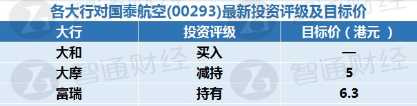 二、各大行对国泰航空(00293)最新投资评级及目标价