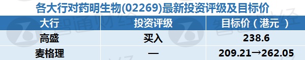 三、各大行对药明生物(02269)最新投资评级及目标价
