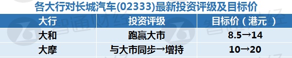 四、各大行对长城汽车(02333)最新投资评级及目标价