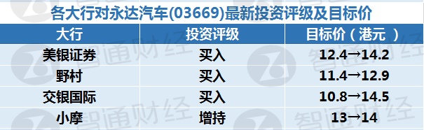 五、各大行对永达汽车(03669)最新投资评级及目标价