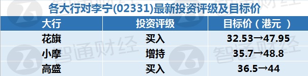 六、各大行对李宁(02331)最新投资评级及目标价