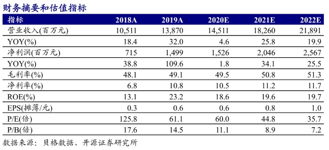 长期来看,公司围绕商品/渠道/供应链全方位的零售转型有利于构筑长期的业务竞争力,进一步提升收入及盈利能力。短期来看,随着卫生事件持续缓解,我们预计下半年公司流水将实现双位数增长,加价倍率仍有提升空间,毛利率有望维持平稳,控费仍将持续,预计全年净利润率提升至10.5%左右。