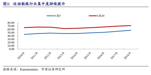 运动鞋服行业龙头效应显著,李宁作为国内品牌龙头拥有规模壁垒,在集中度提升趋势下,市占率有望持续提升。体育品牌主要营销方式包括赞助大型体育赛事、签约头部体育明星,以此增加品牌的体育文化内核,触达不断更新迭代的消费人群,提升品牌知名度,而此类营销资源有限且成本较高,多向行业龙头公司倾斜,逐渐形成“强者恒强”局面,受益于此,我们预计李宁的龙头优势有望持续增强。