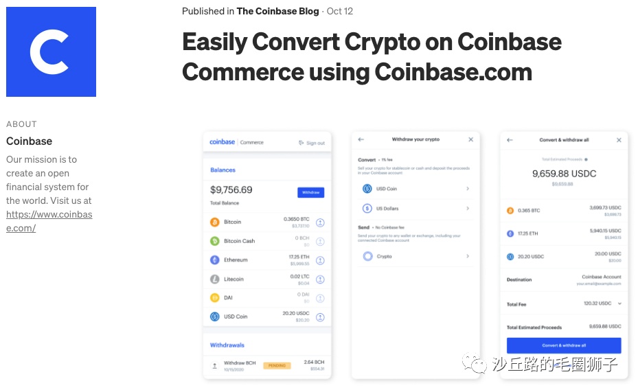 自从Surojit上任以来,Coinbase Commerce已经发布了许多功能,使商家能更便捷地接受加密货币支付。几天前的10月12日,Coinbase Commerce的产品负责人,我的好友John Zettler宣布了一项新产品功能,使Coinbase平台商户可以轻松管理自己持有的加密货币,从而使他们更愿意将加密货币作为一种常见的支付方式。到目前为止,Coinbase经集成了Shopify网店平台,并且已经累计处理了价值超过2亿美元的支付。尽管目前规模还很小,但我觉得它正在朝着加密货币商业化应用的正确方向发展。