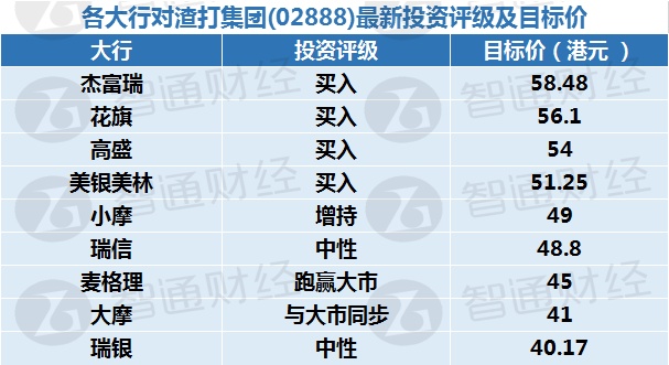 以下是各大行对渣打集团的最新投资评级及目标价。