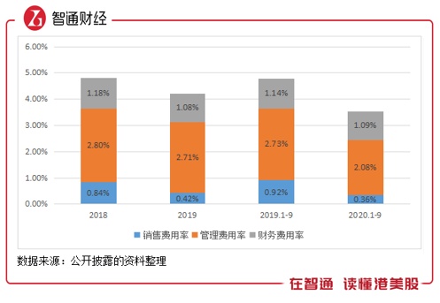 除了毛利率提升外,该公司各项费用于今年首三季均得到优化,财务费用率1.09%,管理费用率2.08%,销售费用率0.36%,同比分别下降0.05个百分点、0.65个百分点以及0.56个百分点,其中财务费用优化显著,费用大幅度下降。管理费作为大头,此次下降主要为勘探费用降低,以及压缩了一般性支出。