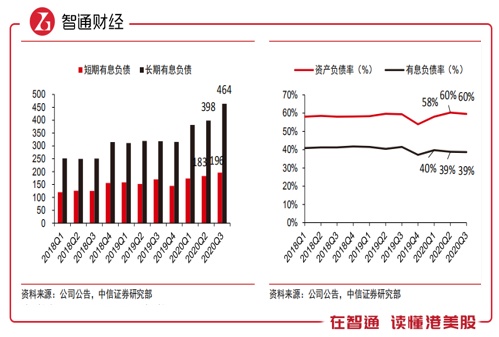 该公司虽然频繁“买买买”,但负债率仍在合理水平,截止2020年9月为59.54%,相比于2017年度仅增加1.69个百分点,该公司主要合理控制负债结构,长债比例较高,有息负债率保持稳定,2020年三个季度基本维持在39%的水平。