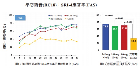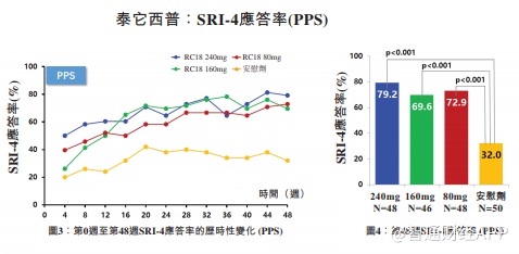 在PPS分析中,泰它西普相比安慰剂(79.2% vs 32.0%)对SRI的改善程度要明显好于贝利木单抗。