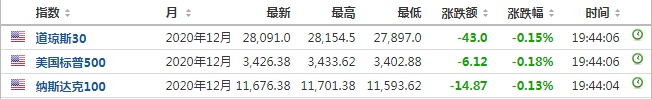 科技股方面,苹果(AAPL.US)盘前涨0.03%,Facebook(FB.US)盘前跌0.12%,亚马逊(AMZN.US)盘前涨0.09%,微软(MSFT.US)盘前跌0.25%。