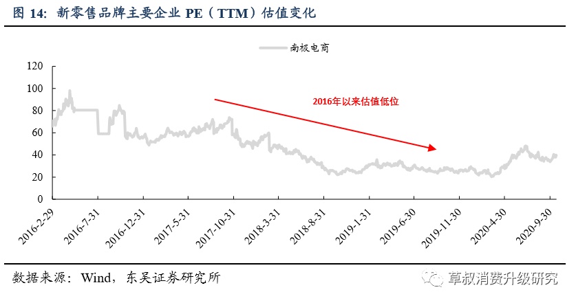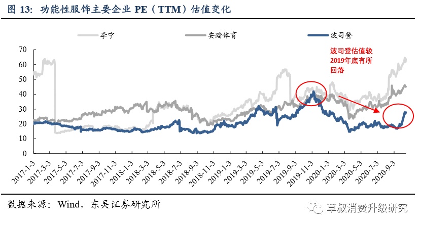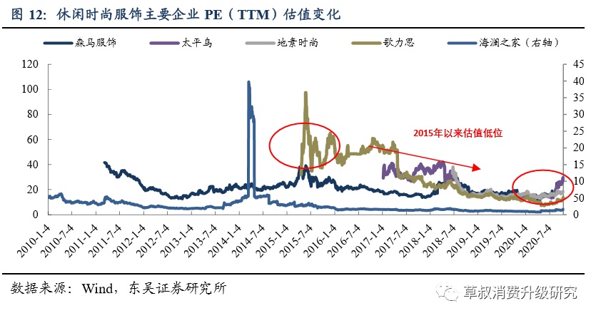 估值处于较低水平,存在一定上升空间。从估值水平上看,主要休闲时尚服饰上市公司PE估值自2015年年中震荡下跌,目前处于仍处于近五年来较低水平;功能性服饰估值较2016年年中的高点有较大差距,其中波司登较2019年底估值也有一定回落;新零售品牌代表企业南极电商估值自2016年持续回落,目前也处于相对低位。考虑到Q4主要公司业绩有较好的预期,板块估值水平存在一定修复空间。