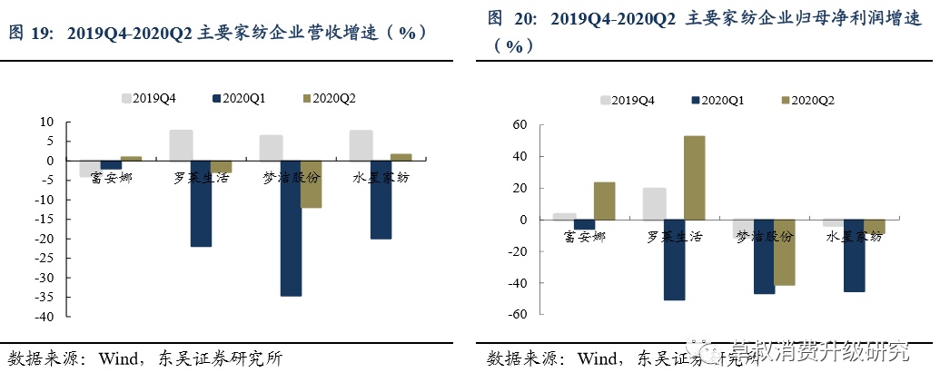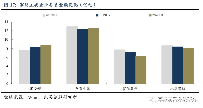 公共卫生事件下加码新零售布局、优化库存水平,冷冬、春节较晚及年末大促有望提振Q4销售。公共卫生事件期间主要家纺企业纷纷加码新零售,利用KOL直播、短视频等方式促进增长。例如,罗莱生活总裁在女神节光顾直播间,3.5小时业绩突破710万。同时,家纺公司在公共卫生事件期间积极优化库存水平,大部分家纺上市公司截至2020H1的库存金额要低于去年同期或2019年底,利于公共卫生事件后销售恢复。我们认为“冷冬”及较晚的春季日期将延长冬季销售期,有利于提升冬被等家纺产品的销售,在较低的库存基数下,年末大促家纺产品有望呈现亮眼表现,看好Q4主要家纺企业业绩表现。