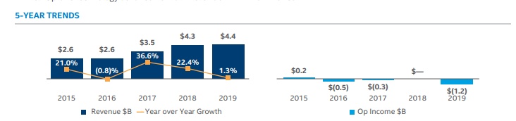 根据英特尔在2019年的年报中显示,NAND所在的非易失性存储器解决方案事业部(NSG)全年收入仅占总收入的6%。据财报显示,该NSG业务2016、2017、2018年分别亏损5.4亿美元、2.6亿美元、500万美元,2019年营业利润亏损达12亿美元,直到今年才盈利。