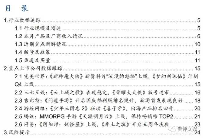 完美世界:《新神魔大陆》新资料片上线,《梦幻新诛仙》预计Q4上线。三七互娱:《云上城之歌》表现稳定,《荣耀大天使》版号过审。吉比特:《问道手游》开启国庆福利服排名提升,新游首发表现良好。游族网络:《少三2》联动《姜子牙》,出海手游排名回升。腾讯:MMORPG手游《天涯明月刀》上线,保持畅销榜TOP2。网易:《阴阳师:妖怪屋》上线,《率土之滨》开启五周年庆典。