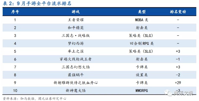 全平台流水排名方面,9月TOP10产品表现稳定,新进入榜单的游戏仅有排名第九的、由中手游出品的8月新游《新射雕群侠传之铁血丹心》,榜单中前四位的游戏则已连续六个月保持现有名次。