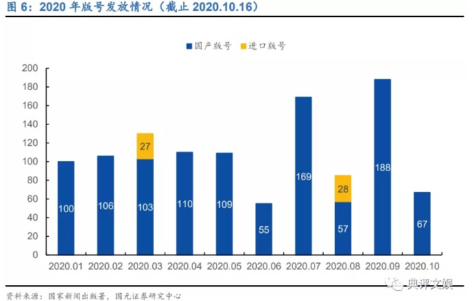版号情况:2020年9月共发放版号188个,均为国产游戏,10月第一批共发放国产游戏版号67个。