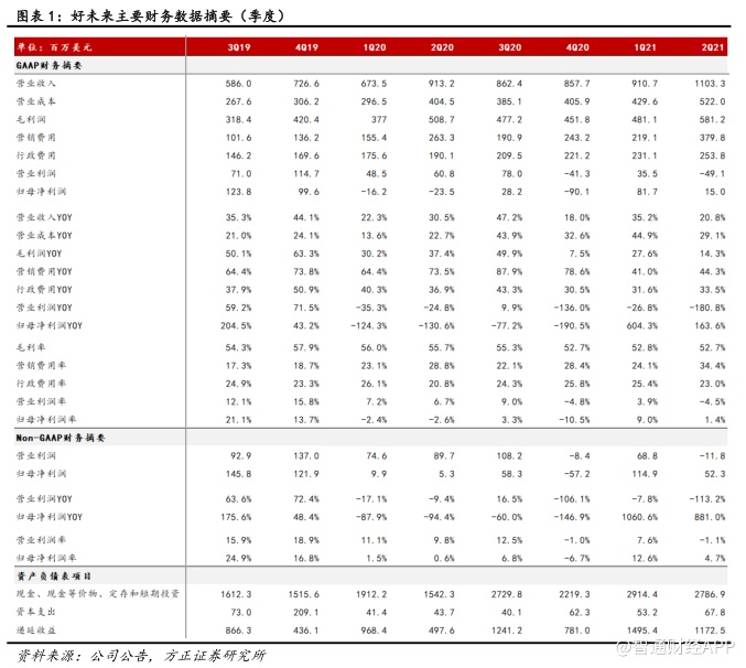 现金流、资本开支:FY21Q2的净经营现金流量约为-5627.3万美元;资本开支约为6780万美元。