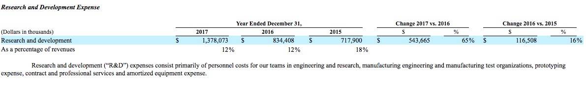 特斯拉2017-2015年研发费用占比,截图自财报文件