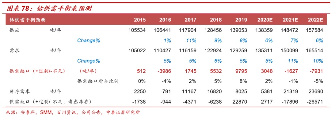 2.4 特斯拉电池日落地,量产离不开钴:1)9月22日,特斯拉召开电池日,推出了“4680”大圆柱电芯电池,是对原有2170电芯的升级,仍为NCA的技术路线,此外Tesla给出了多种电池搭配方案:低续航的采用铁锂电池,高续航里程的车型仍然采用高镍电池;2)钴在电池中主要起到结构稳定的作用,无钴电池的安全性仍受到质疑,Tesla新型电池的技术路线也没有发生颠覆性的转变,“无钴电池”更多停留在设想层面,离真正的产业化应用仍然有很大距离,未来高镍三元电池仍是主流,也就是说“低估化”更能够准确地定义产业发展方向,而非“无钴化”。