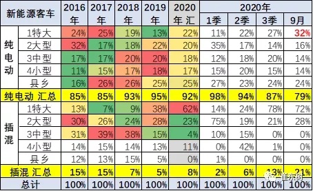 新能源客车的城市公交类占比逐步提升。大客2020年公交的占比相对2019年同期基本持平,并小幅增长。