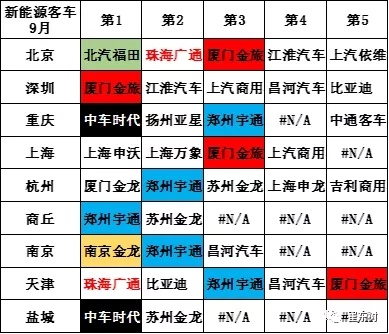 9月新能源客车表现较强的是北京、北京、深圳、重庆、上海、杭州等。