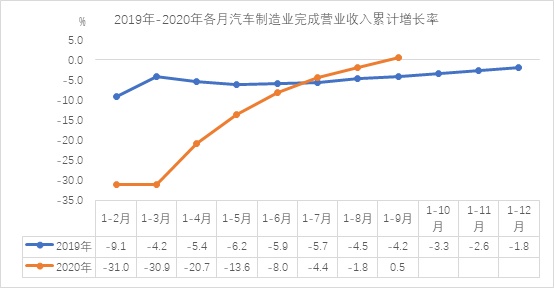 智通财经APP获悉, 据中国汽车工业协会整理的国家统计局公布的最新数据显示,2020年1-9月,汽车制造业完成营业收入56013.1亿元,同比增长0.5%,结束了1-8月下降趋势,占规模以上工业企业营业收入总额的7.6%。