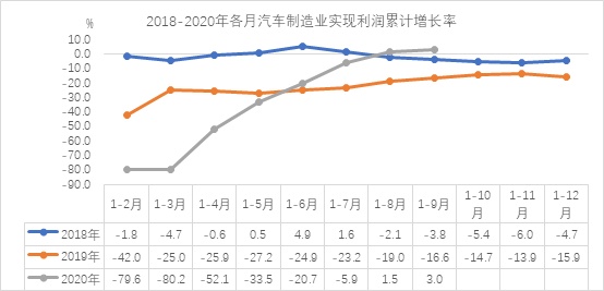 2020年1-9月,汽车制造业实现利润同比继续保持小幅增长,且增速比1-8月有所提升。1-9月,汽车制造业累计实现利润3607.1亿元,同比增长3%,增速比1-8月提升1.5个百分点,占规模以上工业企业实现利润总额的8.3%。