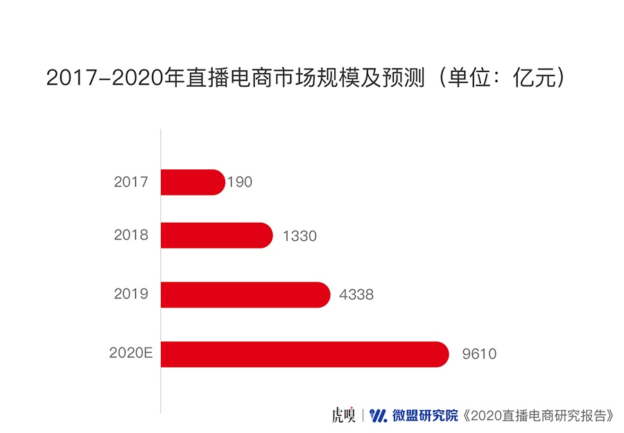 艾媒咨询数据显示,2019年中国直播电商行业总规模为4338亿元,预计2020年国内直播电商行业规模将达到9610亿元,接近万亿级体量,更有说法预测到2021年规模将达到两万亿。全民直播时代正在到来,还远未结束。