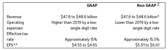展望未来,该公司预期2020年全年营收在476-486亿美元之间,全年每股收益在4.55-4.65美元之间。