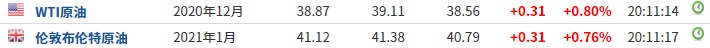 截至发稿,WTI原油涨0.8%,报38.87美元/桶。布伦特原油涨0.76%,报41.12美元/桶。