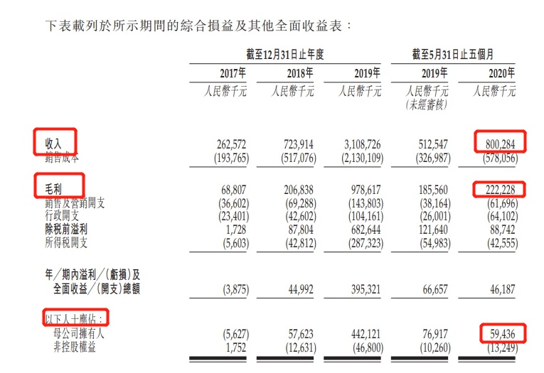据招股书,2017年-2019年,三巽控股分别录得收入2.63亿元、7.24亿元、31.09亿元;毛利分别为6880万元、2.07亿元、9.79亿元;毛利率为26.2%、28.6%、31.5%;净利润分别为负387.5万元、4499.2万元以及3.95亿元。