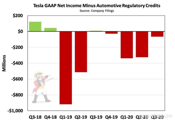 但有分析师指出,这些利润在很大程度上是虚幻的,它来自监管信贷销售,而不是销售汽车。为了达到美国联邦的监管标准,那些未能生产出足够多的环保汽车的制造商必须向特斯拉这样的企业购买碳排放权。仅在过去九个月,特斯拉的信贷销售额就达到11.8亿美元。