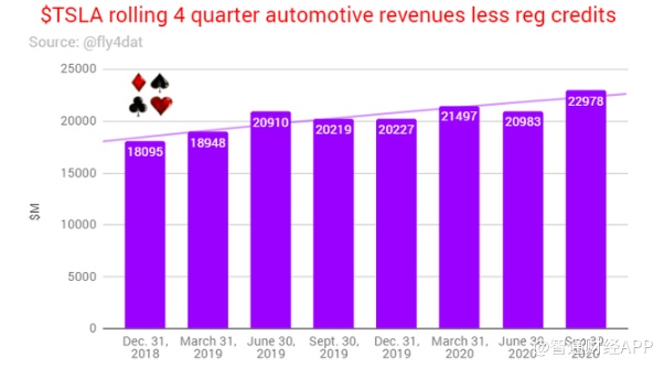 如果在滚动基础上计算出汽车收入减去监管信贷销售的季度差额,我们会看到显著的增长: