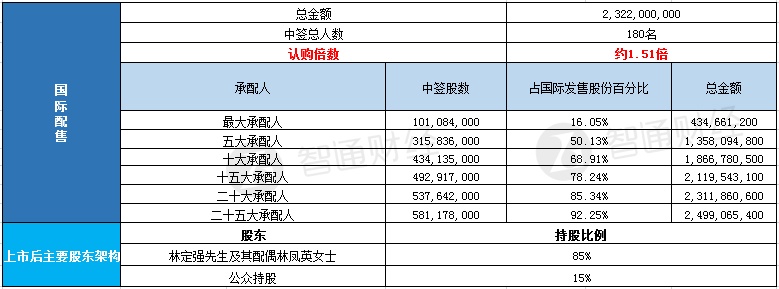国际配售申购人数未披露,认购倍数约1.51倍。