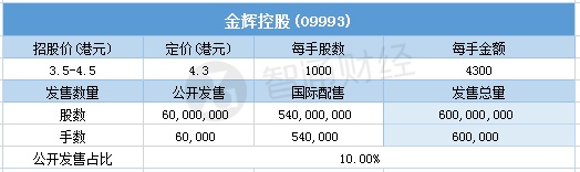 智通财经APP获悉,10月28日,金辉控股(09993)配售结束。配售招股价3.5-4.5港元,最终定价4.3港元,每手4300港元。