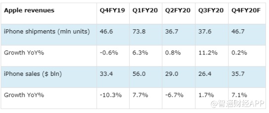 智通财经APP获悉,苹果(AAPL.US)将于北京时间10月30日(周五)早间公布2020财年第四财季业绩。