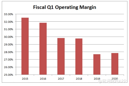 同时,市场对苹果的盈利能力仍然存在疑问。虽然该公司每年都有数百亿美元的净利润,但从下图可以看到,其运营利润率却逐年下降,这其中主要是其产品毛利率下降,以及其服务业务的高毛利率无法反映出来的结果。今年,苹果为节省成本,已经在新款iPhone的销售中取消配备耳机和充电适配器,加上美元逐渐走弱下,接下来该公司的表现仍将值得关注。