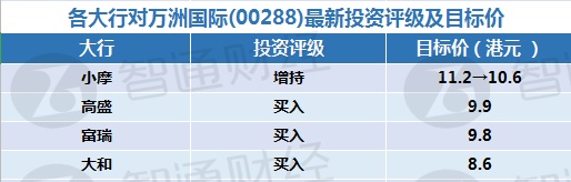 一、各大行对万洲国际(00288)最新投资评级及目标价