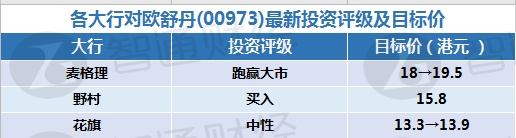 二、各大行对欧舒丹(00973)最新投资评级及目标价