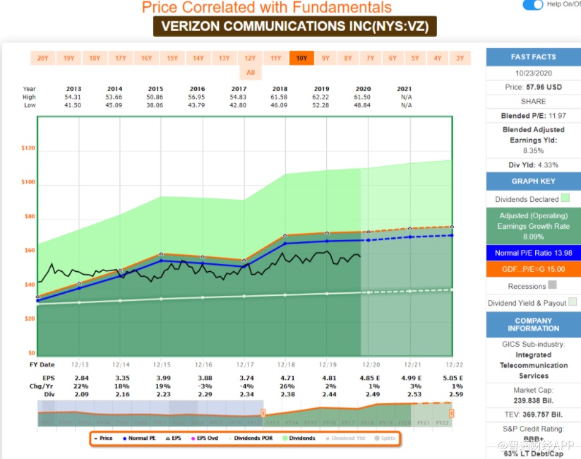 在看待Verizon的时候,关键在于降低期望。Verizon永远不会在短时间内提供爆炸式增长或让投资翻倍。它会默默的以每年超过4%的股息给投资者带来可观的收益。在估值良好的情况下,可能会给投资者带来每年接近10%的长期回报,但如果公司股价没有上升,也可能很容易达到5-8%回报率。