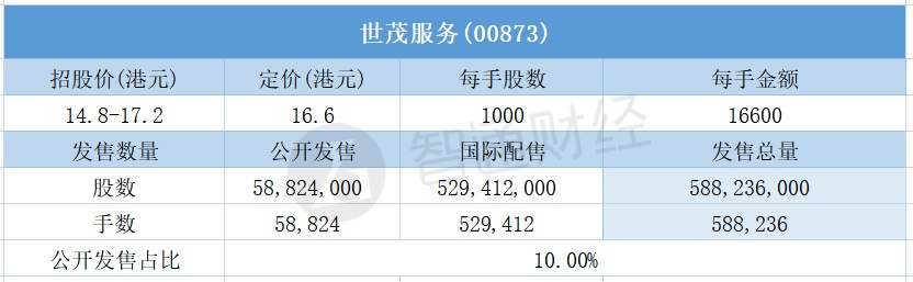 智通财经APP获悉,10月29日,世茂服务(00873)配售结束。配售招股价14.8-17.2港元,最终定价16.6港元,每手16600港元。