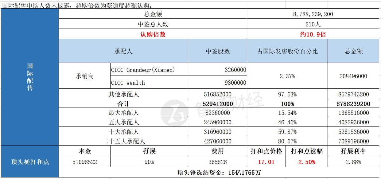 国际配售申购人数未披露,认购倍数约10.9倍。
