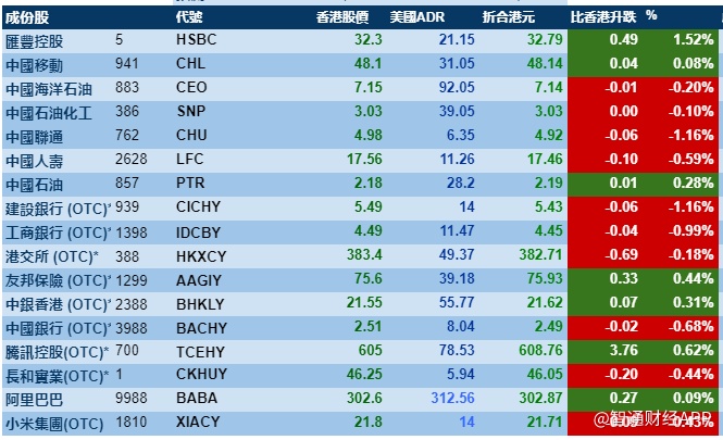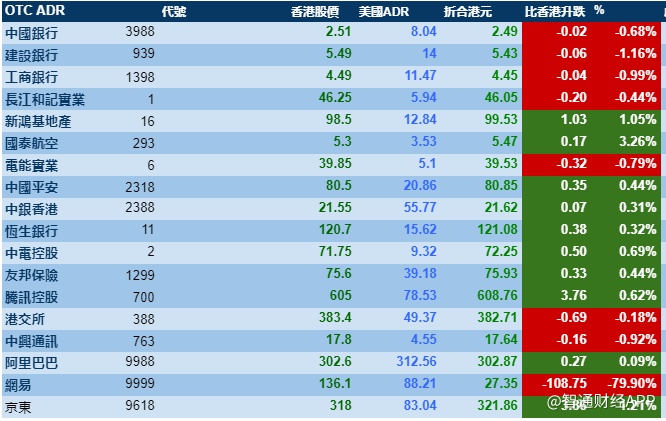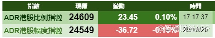 智通财经APP获悉,周四美股三大指数齐涨,港股ADR指数也小幅上涨,按比例计算,收报24609点,升23.45点或0.10%。