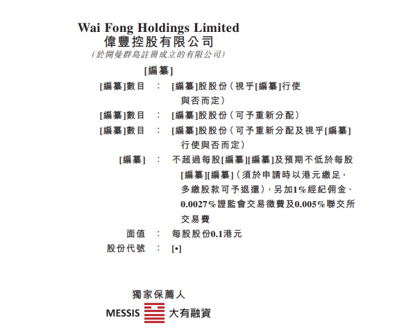 智通财经APP获悉,据港交所10月29日披露,伟丰控股有限公司再次向港交所递交上市申请,MESSIS大有融资为其独家保荐人。此前,2019年4月15日,该公司曾经向港交所递交上市申请。