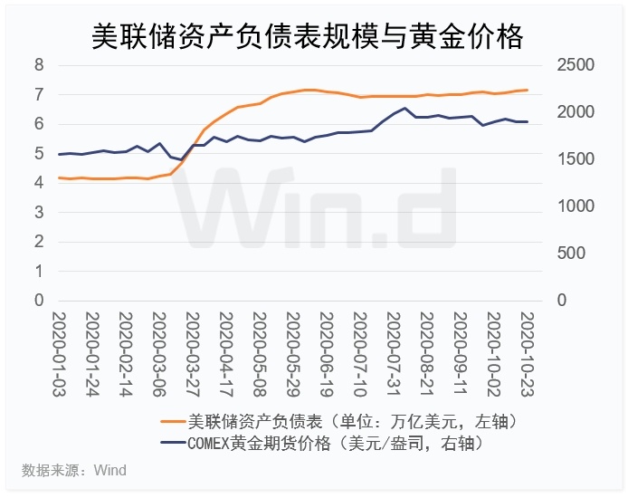 由于公共卫生事件反扑,美国和欧洲实施了更严格的封锁措施,股市10月28日跳水3-4%。黄金也遭到抛售,伦敦现货金价一度回落约40美元至1869美元/盎司的盘中低位。