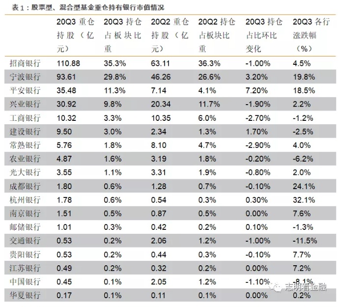 20Q3机构重仓银行个股较Q2变化较大