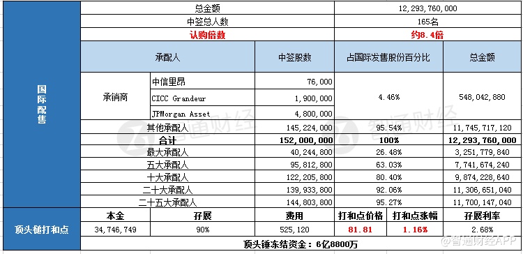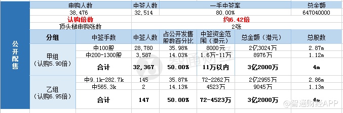 其中,公开配售申购人数38476人,一手中签率80%,认购倍数约6.42倍。
