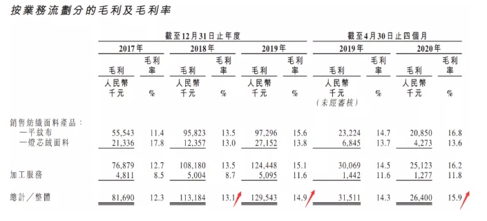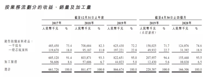 5、2019年收入8.6亿,几乎与2017年持平,90%以上的收入来自于销售布料。招股书预计2020年收入和净利润都会下滑,销量预计减少13.5%。当前公司面临的主要问题是产能接近上限;6分