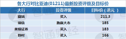 二、各大行对比亚迪股份(01211)最新投资评级及目标价