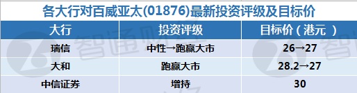 五、各大行对百威亚太(01876)最新投资评级及目标价