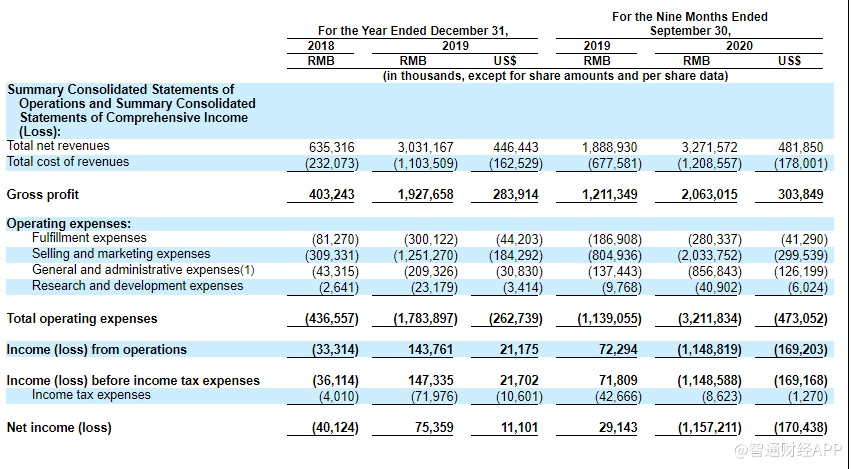 招股书显示,2019年该公司净营收为30.31亿元(人民币,下同),2018年为6.35亿,同比增377%;2019年净利润为7535.9万元,2018年净亏损为4012.4万元。2020年前9个月净营收为32.72亿元,2019年同期为18.89亿元;2020年前9个月净利润为11.57亿元,2019年同期为2914.3万。